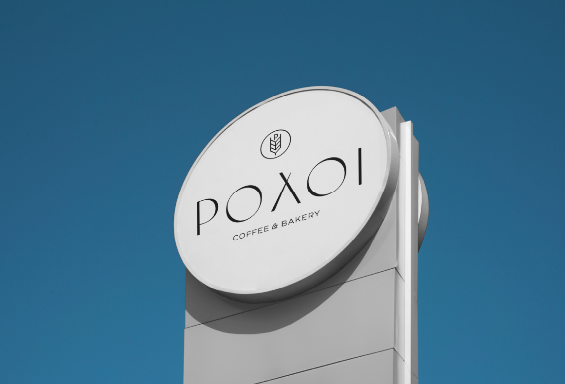 Corporate identity for “Roloi – coffee & bakery”.The design of the letter “λ” evokes the hands of a clock.